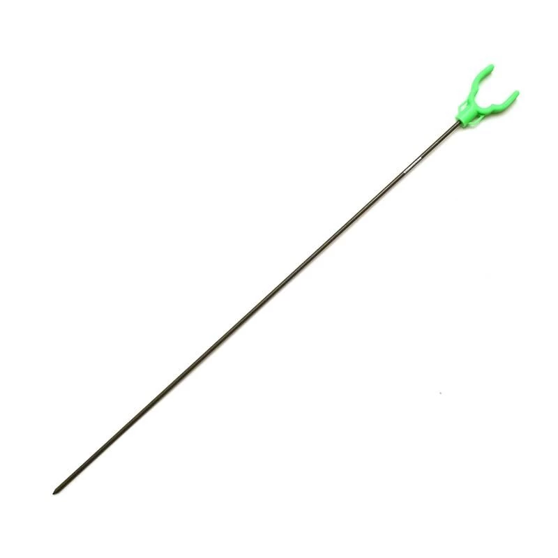 Hengelsteun die voor alle visserijen te gebruiken. Eenvoudige steun voor de beginnende visser. Door zijn dunne metalen piek gemakkelijk in de bodem te plaatsen .