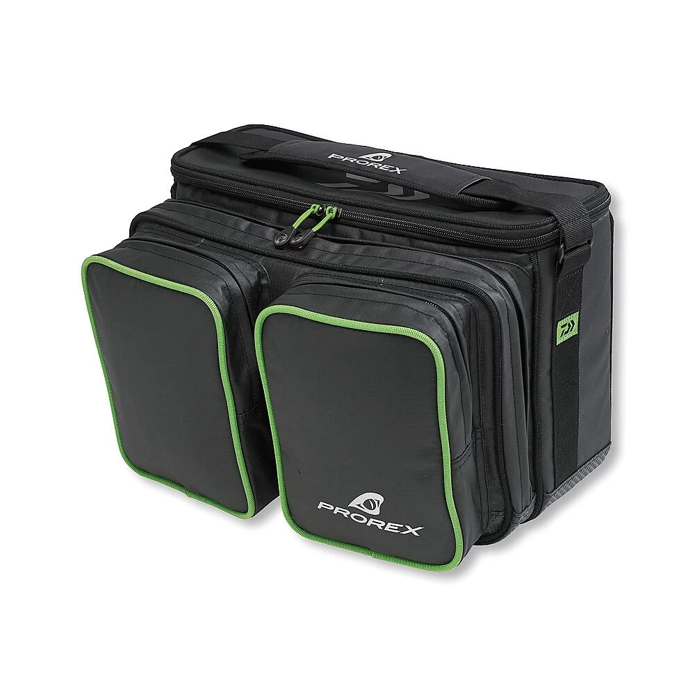 De NEW PROREX SCHOUDERTAS Deze grote schoudertas biedt plaats aan talrijke kleine onderdelen documenten, etc. Voor het transport en de opslag van het kunstaas zijn 2 grote tackle boxes met de gebruikelijke afmetingen van 36×22.5×5.5cm bij deze kunstaastas inbegrepen. De rubberen onderkant voorkomt het binnendringen van vocht van onderen. Beide zakken aan de voorkant bieden bovendien veel ruimte voor het vervoer van kleine doosjes wartels, etc. De gevoerde schouderband optimaal draagcomfort, zelfs als de tas volledig beladen is. Al het materiaal aan de buitenkant is waterafstotend en houdt een korte regenbui stand, zonder zich vol te zuigen. Buitenkant: 100% Polyurethaan (PVC coated) Voering: 100% Polyester