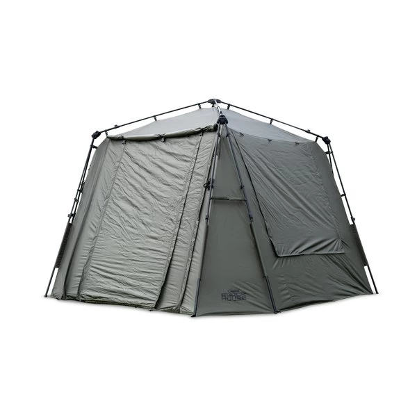 De gepatenteerde blockhouse daagt het klassieke ontwerp van de bivvy uit met een unieke combinatie van bruikbare ruimte, meer hoogte en een afgesloten capsule in een geheel dat binnen enkele seconden rechtop staat.