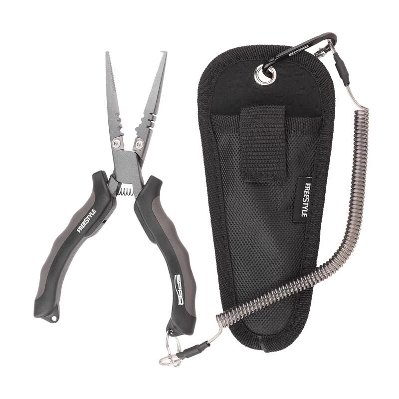 Deze Freestyle Plier 18 is voorzien van een PTFE Coating. De tang heeft een geribbelde bek, een knipfunctie voor fluorcarbon en gevlochten lijnen te knippen en een krimp functie voor het krimpen van crimps en double crimps. Ook heeft de tang een splitring functie en een hakenbuiger. Wordt geleverd met een houder en karabijnhaak.
