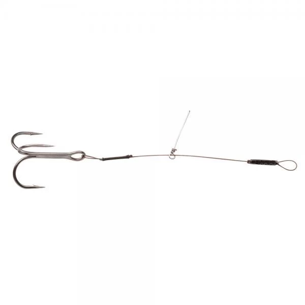 Topkwaliteit RVS snoek stingers gemaakt met soepel 7×7 American Fishing Wire. Het schuivende RVS pinnetje druk je eenvoudig in de softbait voor een super fraaie setup, en komt los bij de aanbeet. De stopper is handig voor het aansluiten van het lusje op het oog van de jigkop. Verkrijgbaar in verschillende maten. Van klein naar groot: Size 2, Size 1, Size 1/0
