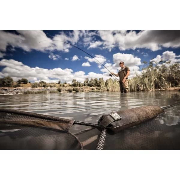 Het helpt voorkomen dat het net zinkt tijdens het landen van een vis en is voorzien van een elastische net-houder om te voorkomen dat het net blijft hangen aan obstakels of vuil op de grond.